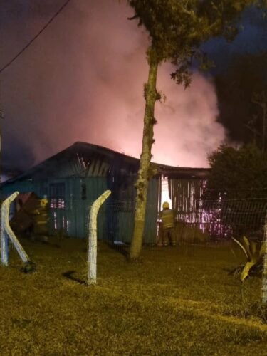 Um incêndio destruiu completamente uma residência localizada às margens da RS-030, no município de Osório, na noite deste domingo (1º).