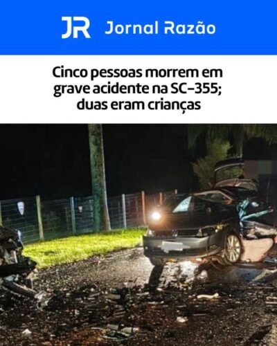 Um acidente de grandes proporções registrado no início da noite deste domingo (12), na rodovia SC-355, entre Videira e Iomerê, no Meio-Oeste catarinense, deixou cinco pessoas mortas.