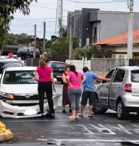 Apesar do impacto, o acidente resultou apenas em danos materiais nos automóveis.