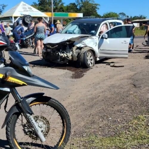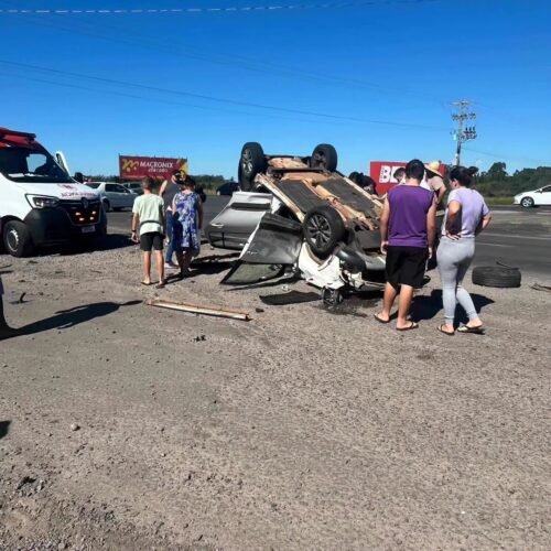 Com o impacto da batida, um dos veículos acabou capotando, causando grande mobilização no local e chamando a atenção de motoristas que passavam pela rodovia.