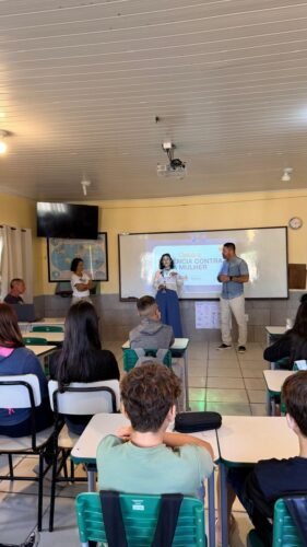 Nesta quinta-feira (09/04), a equipe do Projeto OAB Vai à Escola realiza palestras na Escola Municipal de Ensino Fundamental Osvaldo Bastos, no distrito de Aguapés, em Osório, para tratar da Violência Contra a Mulher.