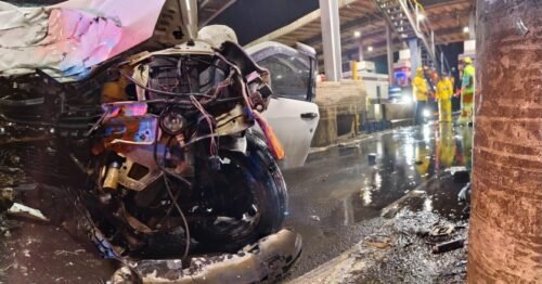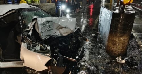 De acordo com as informações, o veículo colidiu frontalmente contra uma mureta de concreto entre as cabines de pedágio.