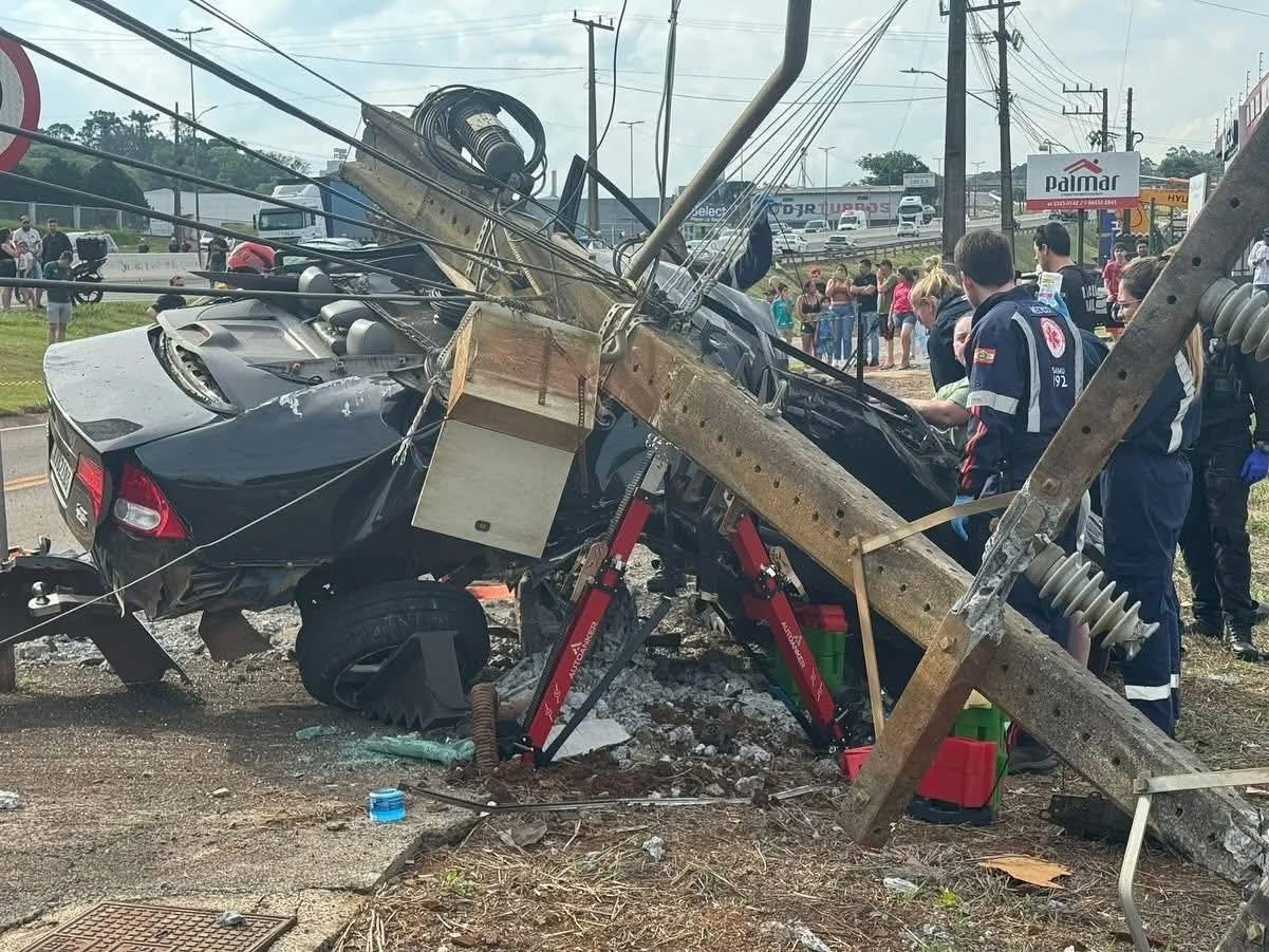 Um acidente envolvendo um carro elétrico chamou a atenção das equipes de emergência pela complexidade do atendimento