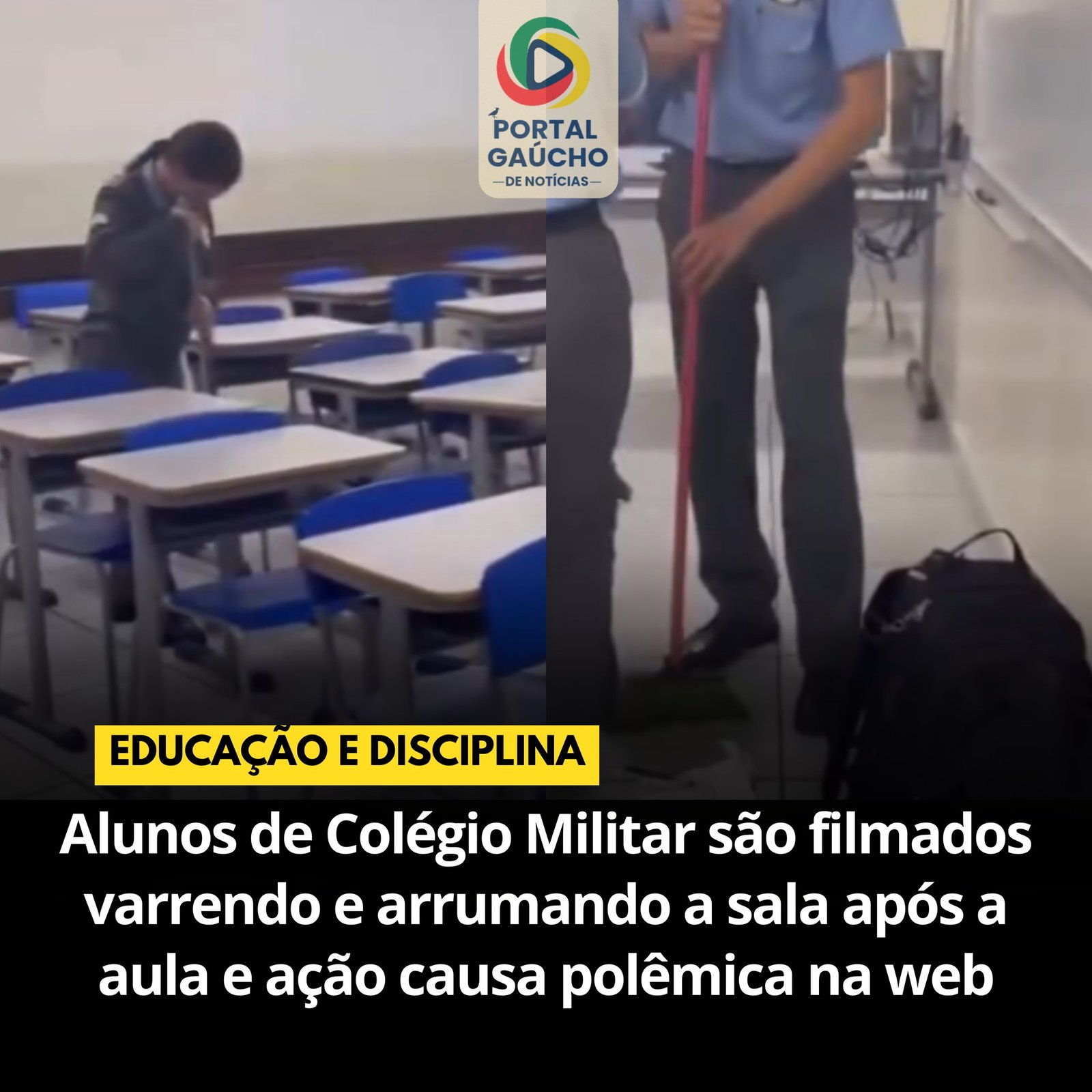 Um vídeo divulgado nas redes sociais nesta semana mostra alunos de um Colégio Militar realizando a limpeza das salas de aula onde estudam.