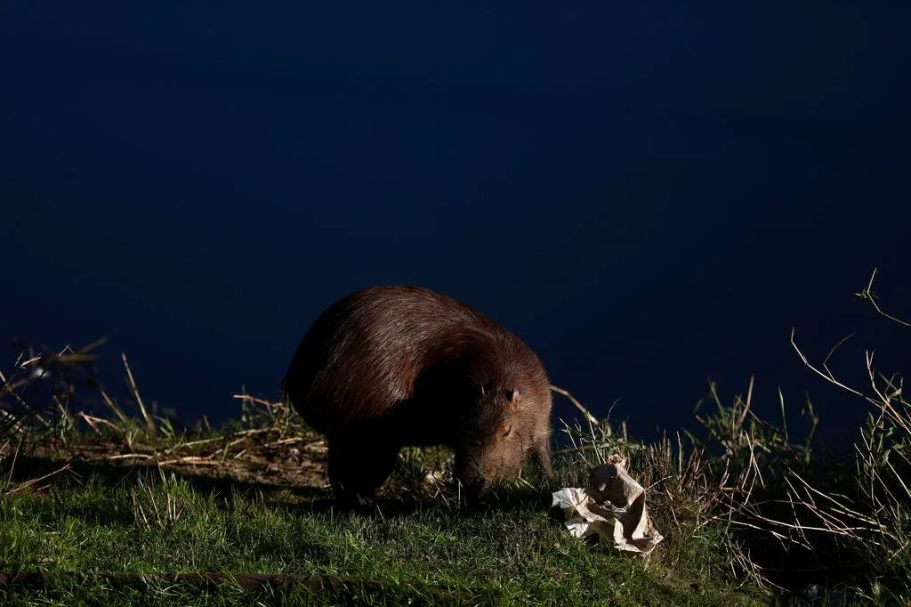 A presença do animal fez com que pedestres parassem sobre a travessia do Dilúvio para apreciar e fotografar o bicho. O mamífero, que é um roedor herbívoro, passou a tarde se alimentando de grama.