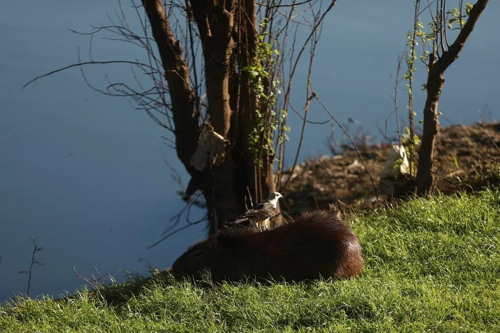 Em alguns momentos, a capivara se deitou e até serviu de apoio para um pássaro que pousou sobre suas costas. No início de junho, outra capivara também foi avistada no Dilúvio. Não se sabe se é a mesma.