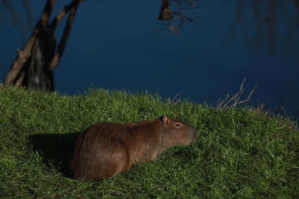 A aparição de uma capivara tomando sol às margens do Arroio Dilúvio, em Porto Alegre, chamou a atenção de quem passou pelo local nesta terça-feira (13).