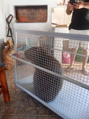 O animal foi encontrado inicialmente no pátio do imóvel e, em seguida, acabou se abrigando dentro da casa.