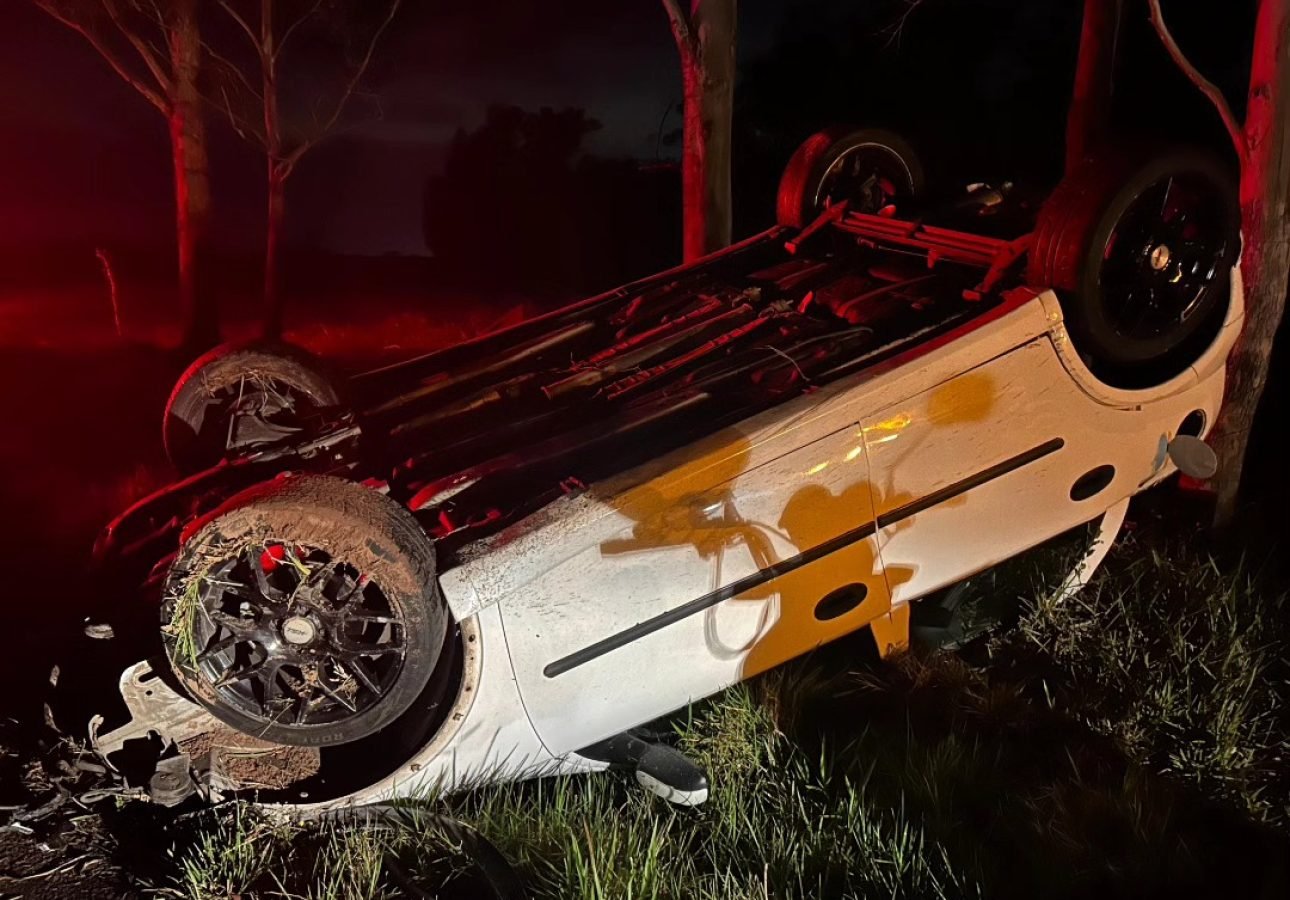 Dois adolescentes escaparam sem ferimentos após o veículo em que estavam capotar na Estrada do Palmital, em Osório, na noite deste sábado (18).