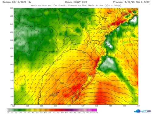 O domingo é considerado pela MetSul Meteorologia como o dia de maior risco de tempo severo associado à formação do ciclone.