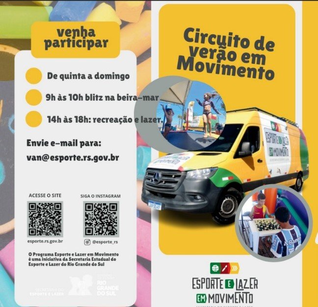 O Circuito Verão em Movimento 2026 é uma realização da Secretaria do Esporte e Lazer do Estado, em parceria com o Cref /RS, reforçando o compromisso com a promoção de hábitos saudáveis, esporte e qualidade de vida durante a temporada de verão.