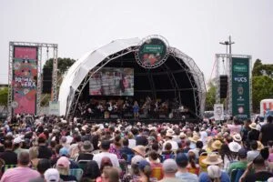 A Universidade de Caxias do Sul abraça a comunidade regional e é abraçada de volta. A constatação é evidente em eventos como o Concerto da Primavera, que em sua 16ª edição neste domingo, 22 de outubro, registrou público recorde, estimado em mais de 11 mil pessoas. O sol abençoou o espetáculo realizado em parceria com a Unimed Nordeste-RS e o Campus-Sede foi tomado por uma plateia que não parava de chegar, ultrapassou o estacionamento em frente ao Cetel ocupando os gramados e até as vias tradicionalmente destinadas aos veículos.