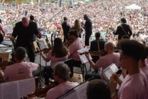 Quando anunciava a penúltima música (sob lamentos da plateia, que não queria que o Concerto chegasse ao final), o maestro Manfredo Schmiedt agradeceu a toda a equipe envolvida na realização. “Realmente foi uma união de esforços, como tem sido nesses 16 anos. É cada vez uma alegria maior estar com vocês”, declarou. Atendendo aos pedidos, o bis contou com animação no nível máximo e milhares de vozes em uníssono, cantando Bohemian Rhapsody, da banda Queen. Aplaudidos de pé, os músicos encerraram mais uma edição de sucesso da iniciativa de celebração à cultura, aprovada por pessoas de todas as idades.
