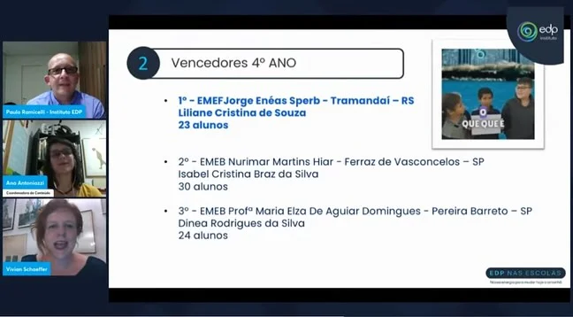 Aconteceu na última quarta-feira (08/11), o evento virtual de divulgação dos resultados do Prêmio EDP Nas Escolas que abordou a temática das energias renováveis.