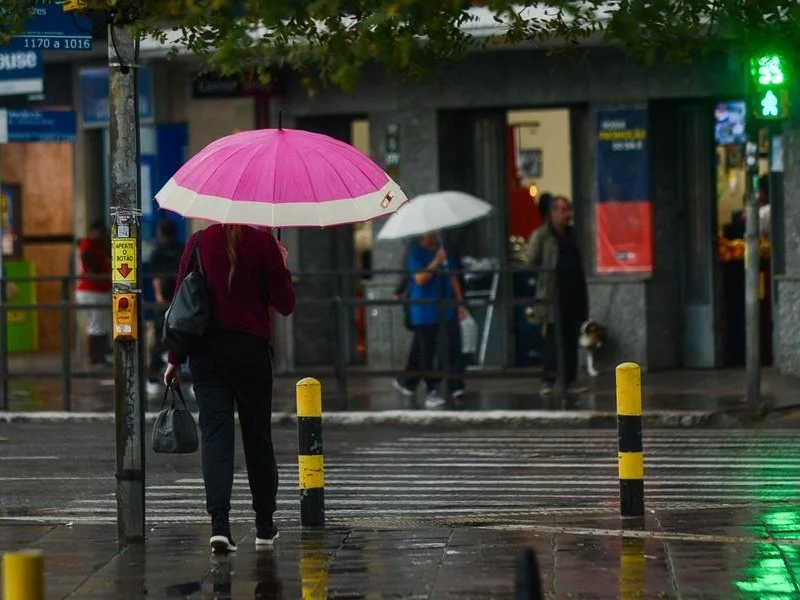 Os volumes de chuva não devem ser altos na maioria das regiões, mas há risco de temporais isolados, com vento forte e trovoadas na chegada do sistema frontal.