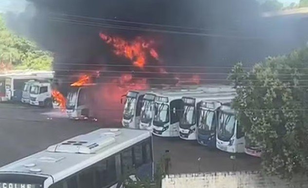 Um incêndio atingiu, na tarde desta quinta-feira (20), o pátio de uma empresa responsável pelo transporte coletivo em Sapucaia do Sul, na Região Metropolitana de Porto Alegre.