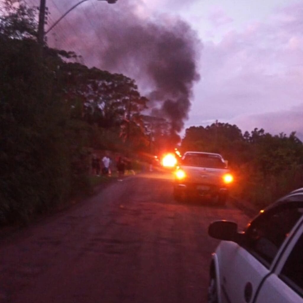 O sinistro ocorreu no km 17, deixando o automóvel completamente destruído pelas chamas.