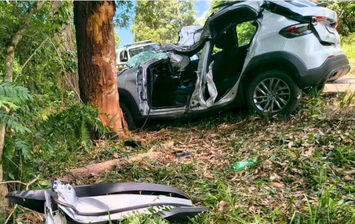 Na contramão, o veículo atingiu o Gol e, na sequência, colidiu violentamente contra uma árvore às margens da rodovia. Saulo ficou preso nas ferragens.