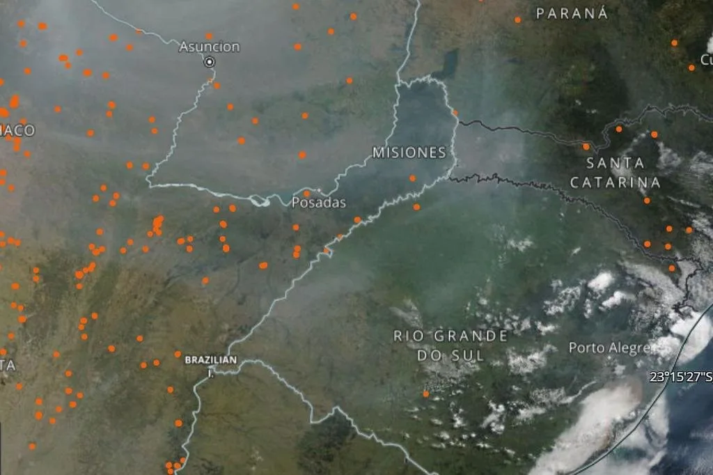 Imagens de satélite registraram uma espessa nuvem de fumaça sobre o RS. Segundo a Climatempo, o evento foi causado por uma mudança nos padrões de circulação de vento entre o sul do Brasil, o Paraguai e o norte da Argentina. Esse deslocamento fez com que o vento transportasse partículas provenientes do alto volume de focos de incêndio nestes locais para a região sul do país.