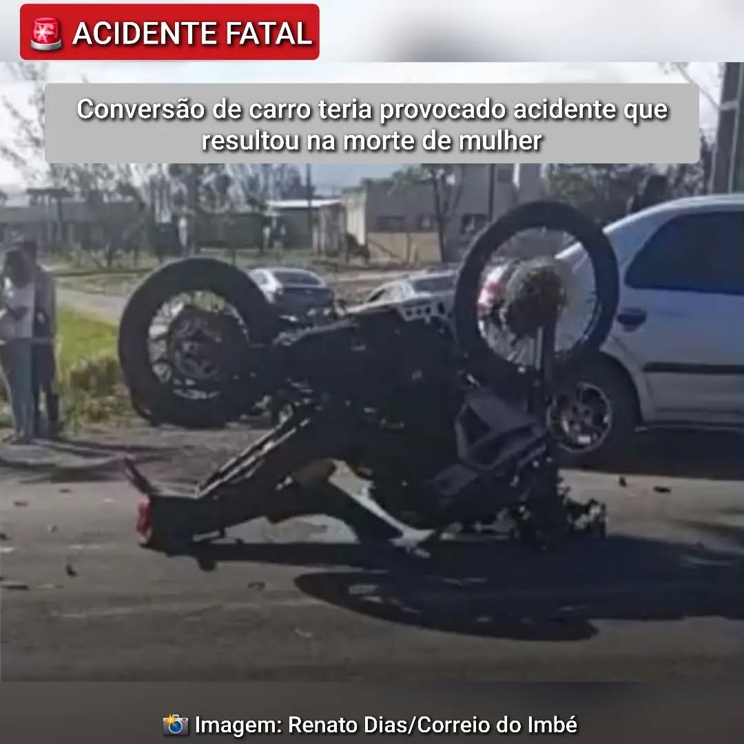 A colisão envolveu uma motocicleta e um carro, deixando uma mulher morta e um homem ferido.