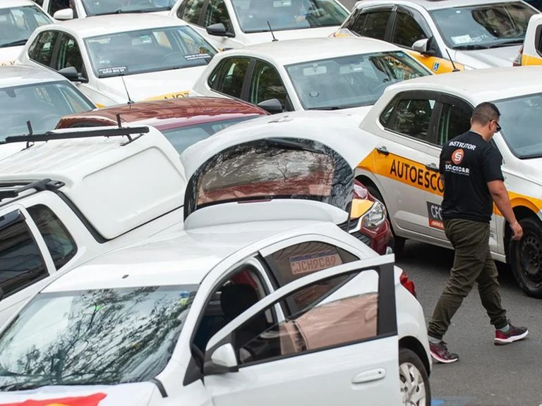 Sindicatos representantes de autoescolas protestam em Porto Alegre contra o fim da obrigatoriedade de aulas para CNH