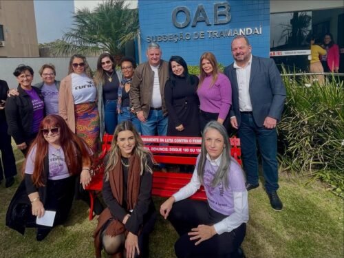 Na tarde de hoje foi realizado o ato de lançamento do 1º Banco Vermelho, uma iniciativa da OAB Tramandaí, através da Comissão da Mulher Advogada, em parceria com a Procuradoria da Mulher da Câmara de Vereadores.
