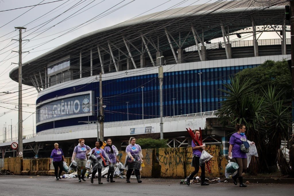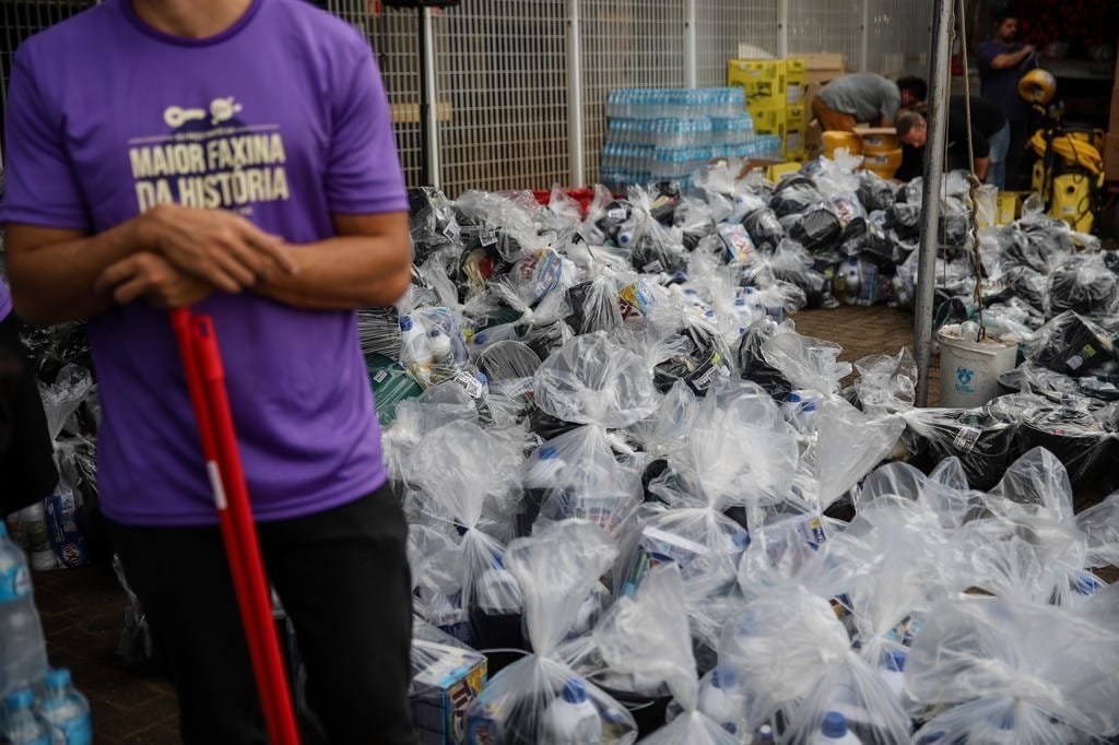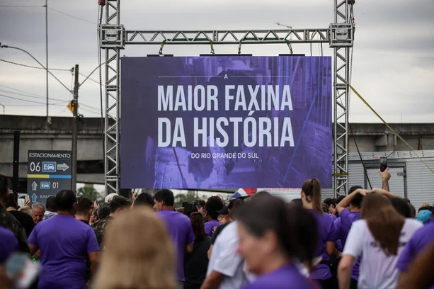 Eles se encontraram às 9h deste domingo em frente à Arena do Grêmio, na Avenida Padre Leopoldo Brentano, onde formaram uma fila para pegar os materiais de limpeza e proteção. Depois, atuaram na força-tarefa até o final da tarde. Classificada como a maior faxina solidária do Rio Grande do Sul, a ação foi organizada pela plataforma gaúcha Meu Lar de Volta.