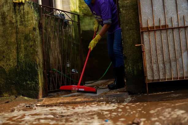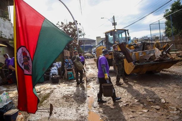 Apesar do cenário triste nos bairros Humaitá e Vila Farrapos, com o excesso de lodo, cheiro forte e entulho espalhado, o domingo (23) foi marcado por um sentimento de esperança no local, com o tempo seco e uma corrente de solidariedade.